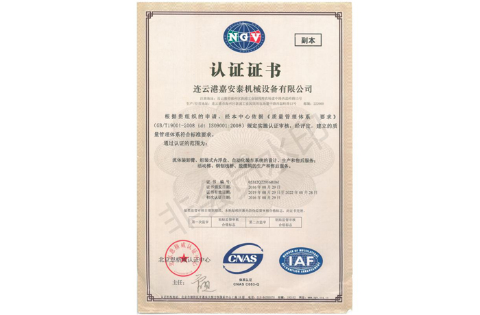 資信等級證書裝車鶴管適用于汽、煤、柴油,液態化工介質汽車、頂部裝卸車。裝車鶴管可以分為三類,分別是:全自動鶴管、氣動帶手動鶴管、手動鶴管。裝車鶴管還有三個特殊功能,分別是:氣相回收,伴熱保溫,變形產品。 鶴管操作規則流程: a.鶴管在裝車前,操作人員需要對油庫油臺設施的完好性進行檢查,檢查靜電接地線,確保油車主梁上緊固有效。 b.靜電接地線應在卸油前連接好;按規定做好穩油靜置工作 c.將溢油探頭放至油缸口安全高度位置 d.在鶴管裝卸油結束后,需將尾管里的余油、氣體排空后才能提出放置原來位置。<了解詳情>